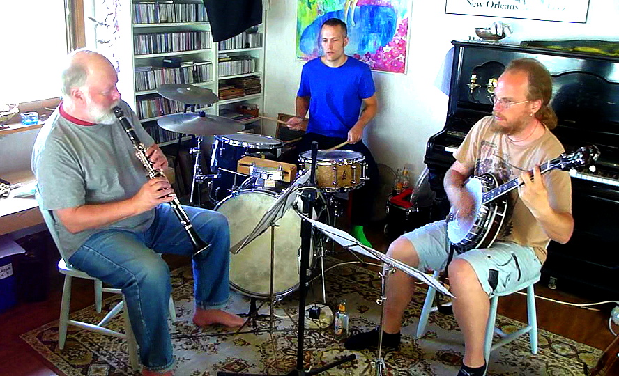 Lasse Collin, clarinet, Mathias Gustavsson, banjo, Felix Collin, drums.